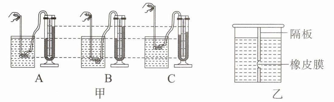 (选填“漏气”或“不漏气”)。(2)某同学用同一压强计和盛有水的容器进行了多次实验,情形如图甲所示。比较A、B两图可知:在液体内部的同一深度,
