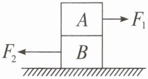 3. 如图所示,A、B两物体叠放在水平桌面上受到两个水平拉力而保持静止,已知$F_{1}=3N$,$F_{2}=5N$。那么物体 B 受物体 A 和水平桌面的摩擦力大小分别为 ……………… (