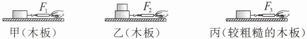 的原理,得到摩擦力的大小。(2)三次实验中分别读出弹簧测力计的示数为$F_{1}$、$F_{2}$和$F_{3}$,其中示数最小的是