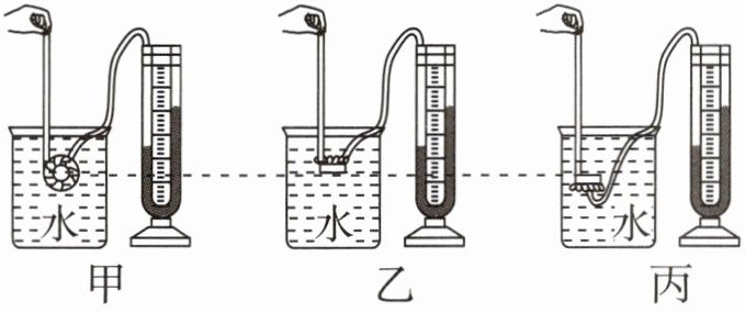 的增加而增大。(5)在图乙中,若只将烧杯中的水换成盐水,其他条件不变,则可以观察到U形管两侧液面的高度差