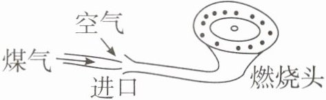 1. 如图所示的是家用煤气灶灶头的示意图。使用时打开煤气阀门,拧动点火装置,煤气和空气在进口处混合流向燃烧头被点燃,而煤气不会从进口处向空气中泄漏,其原因是(