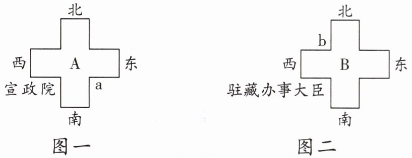 (2) 根据材料二,判断图一中 A 和图二中 B 分别代表的朝代。A、B 两个朝代为了加强对边疆地区的管辖,分别在 a、b 两地设置了什么管理机构或官职?