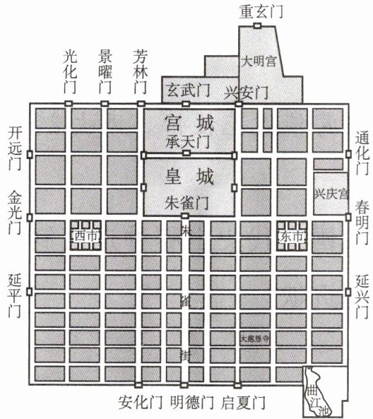 8.下图是中国古代某都城平面图,关键信息有:大明宫、宫城、皇城、东市、西市等。该城市最有可能是 (