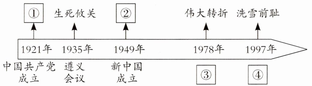2. 某同学在学习中国共产党艰辛的奋斗历程时,自制了历史年代尺,其中④处应该填写的是 ……………………………………………………………………………………………(