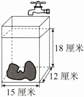 如图,将一石块放入一个长15厘米、宽12厘米、水深10厘米的长方体水槽中,石块淹没在水中,水深上升到18厘米,石块的体积是多少?