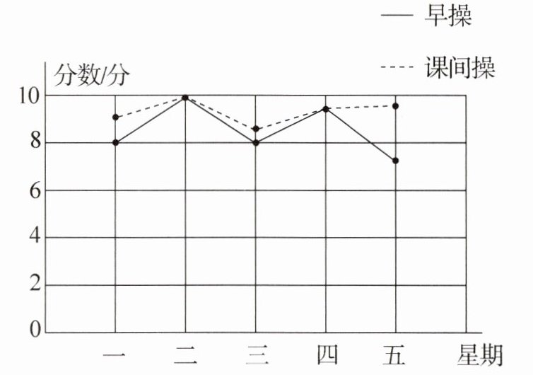 (1)课间操做得最好的是哪一天?最差的是哪一天?