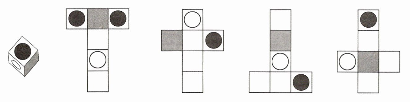 第四个图形中,带阴影的面和带圆的面是相邻的,