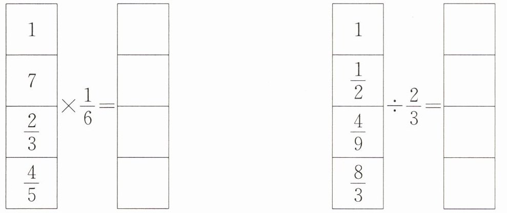 解析:本题主要考查分数的乘法和除法运算。对于分数乘法,用分子相乘的积做分子,分母相乘的积做分母;对于分数除法,除以一个分数等于乘以它的倒数。