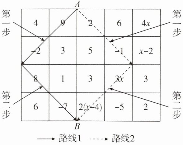 (2)若“路线 2”中第一步上两个数字的积大于第二步上两个式子的和,求 x 的取值范围。