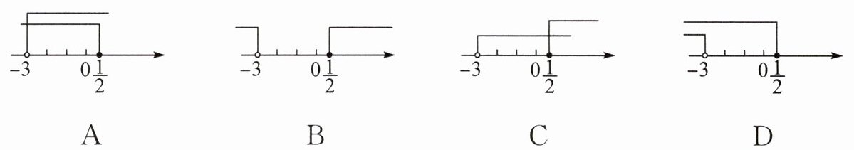 1. 不等式组$\left\{\begin{array}{l} 4x≤2,\\ x+3>0\end{array}\right. $的解集在数轴上可表示为(