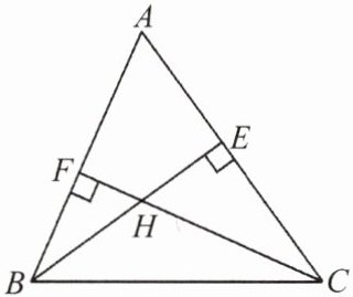 因为$BE$是$AC$上的高,$CF$是$AB$上的高,所以$\angle AEB = 90^{\circ}$,$\angle AFC = 90^{\circ}$。