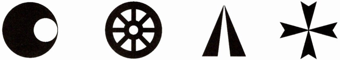 - 第一个图形:沿着过圆心且垂直于两圆切点连线的直线对折,直线两侧部分能够完全重合,所以对称轴有$1$条。