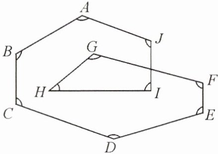 观察图形可知,可将$∠A$、$∠B$、$∠C$、$∠D$、$∠E$、$∠F$所在的六边形与$∠G$、$∠H$、$∠I$、$∠J$所在的四边形的内角和相加,再减去$∠I$和$∠J$组成的平角$180^{\circ}$(因为在相加过程中$∠I$和$∠J$多算了一次)。