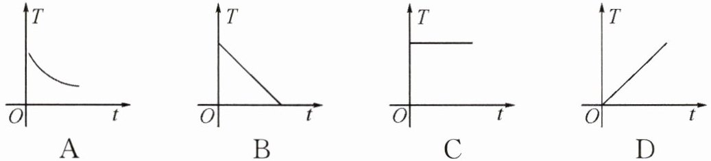 3. 夏天,一杯开水放在桌面上,水温$T$与放置时间$t$之间的关系的大致图象可表示为(