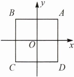 4. 如图,$x$轴、$y$轴为正方形$ABCD$的对称轴,若正方形的边长为$1$,则各顶点的坐标分别是$A$(