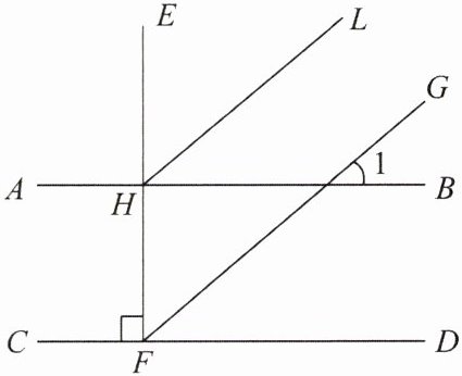 4. 如图,已知 $AB// CD$,$HL// FG$,$EF\perp CD$,$\angle 1 = 40^{\circ}$,那么 $\angle EHL$ 的度数为 (