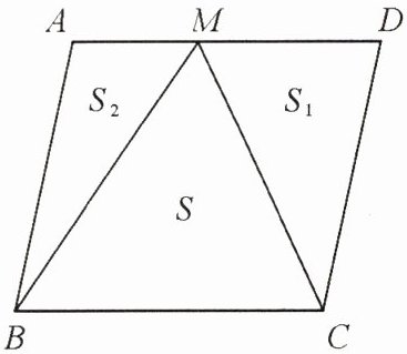 3. 如图,$M$ 是 $□ ABCD$ 的一边 $AD$ 上的任意一点,若 $\triangle CMB$ 的面积为 $S$,$\triangle CDM$ 的面积为 $S_1$,$\triangle ABM$ 的面积为 $S_2$,则 $S$、$S_1$、$S_2$ 的大小关系正确的是 (