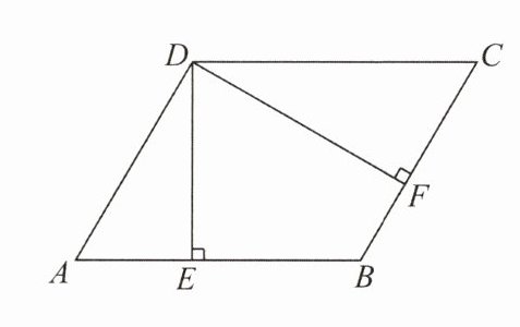 1. 如图,在$□ ABCD$中,$DE\perp AB$于点$E$,$DF\perp BC$于点$F$,$□ ABCD$的周长是$36$,$DE=4\sqrt{3}$,$DF=5\sqrt{3}$。求: