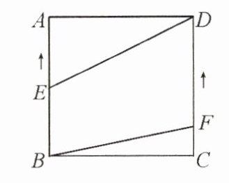 4. 如图,正方形 $ ABCD $ 的边长为 $ 6 \mathrm{~cm} $,动点 $ E $ 沿 $ BA $ 由 $ B $ 向 $ A $ 以 $ 2 \mathrm{~cm} / \mathrm{s} $ 的速度移动,动点 $ F $ 沿 $ CD $ 由 $ C $ 向 $ D $ 以 $ 1 \mathrm{~cm} / \mathrm{s} $ 的速度移动,动点 $ E $、$ F $ 分别由 $ B $、$ C $ 同时出发,