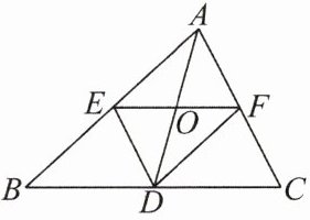 2. 如图,在$\triangle ABC$中,$EF$为$\triangle ABC$的中位线,$D$为$BC$边上一点(不与$B$,$C$重合),$AD$与$EF$交于点$O$,连接$DE$,$DF$,要使四边形$AEDF$为平行四边形,需要添加条件