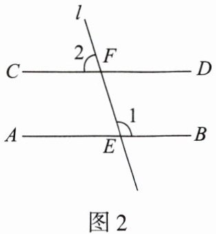2. 如图2,直线$AB// CD$,直线$l$交$AB$于点$E$,交$CD$于点$F$,若$∠2=80^{\circ }$,则$∠1$等于(