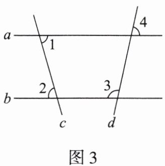 3. 如图3,直线$a$,$b$与直线$c$,$d$相交,若$∠1=∠2$,$∠3=110^{\circ }$,则$∠4$的度数为(