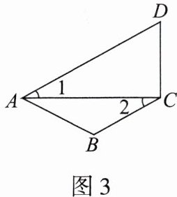 4. 如图3,在四边形$ABCD$中,若$∠1=∠2$,$∠D=62^{\circ }$,则$∠BCD=$