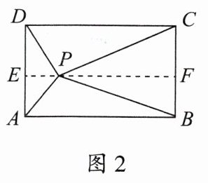 提示:显然,$S_{三角形PAB}$与$S_{三角形PCD}$的具体值是无法确定的,但题目要求的是$S_{三角形PAB}+S_{三角形PCD}$. 将AB沿AD平移到EF,使EF经过点P,交AD于E,交BC于F(如图2),则四边形ABFE和四边形CDEF都是长方形.