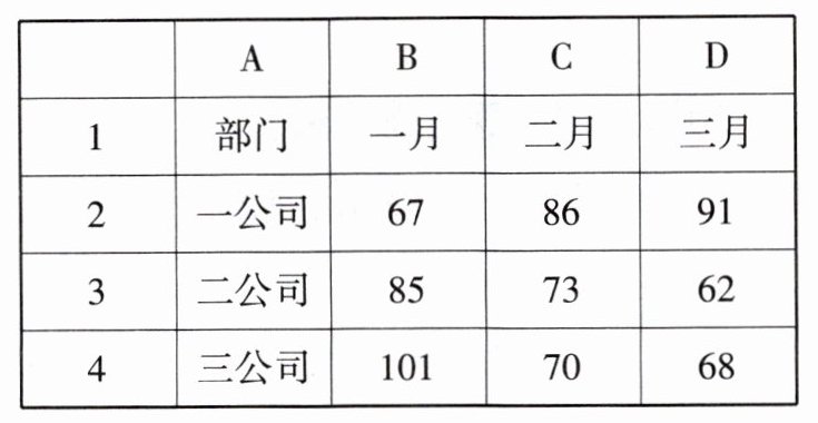 4. 下表是电脑 Excel 表格 (电子表格) 的一部分,中间工作区被分成若干个单元格,表中“二公司”所在的单元格用 A3 表示,则“70”在单元格