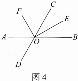 5. 如图4,直线$AB$,$CD$相交于点$O$,$OE$平分$∠BOC$,$OF⊥OE$于点$O$. 若$∠AOD = 70^{\circ}$,则$∠AOF$等于(