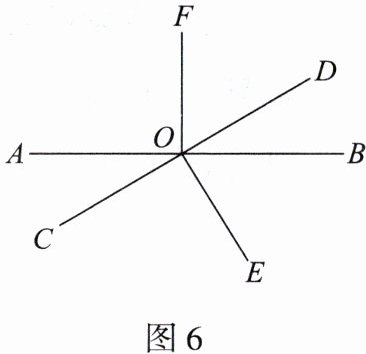8. 如图6,直线$AB$与$CD$相交于点$O$,$OE⊥CD$,$OF⊥AB$,$∠DOF = 65^{\circ}$.