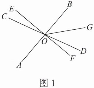 2. 如图1,$AB$,$CD$,$EF$三条直线交于点$O$,且$OE⊥AB$,$∠COE = 20^{\circ}$,$OG$平分$∠BOD$,则$∠DOG$的度数是(