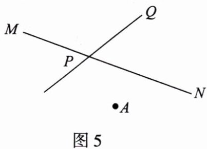 8. 如图 5,铁路 MN 和铁路 PQ 在 P 点处交汇,点 A 处是某中学,$AP=160$米,点 A到铁路 MN 的距离为 80 米,假设火车行驶时,周围 100 米以内会受到噪声影响.