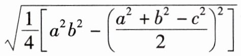 其实在我国古代算学专著《九章算术》中,已经有求三角形面积的公式——“底乘高的一半”.但在实际丈量三角形土地面积时,要找出高来并非易事,所以古人想到了三角形的三条边,这样求三角形的面积就方便多了.但是怎样根据三边的长度来求三角形的面积呢?直到南宋,中国著名的数学家秦九韶提出了“三斜求积术”.他把三角形的三条边分别称为小斜、中斜和大斜,“术”即方法,化为公式如下:$S=\sqrt {\frac {1}{4}[a^{2}b^{2}-(\frac {a^{2}+b^{2}-c^{2}}{2})^{2}]}$(a,b,c分别为小斜、中斜、大斜).