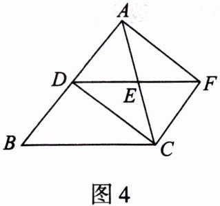 6. 如图 4,已知 $\triangle ABC$,$D$ 为 $AB$ 上的点,$AE = EC$,延长 $DE$ 到点 $F$,使 $EF = DE$,连接 $AF$,$FC$,$CD$,则图中四边形 $ADCF$ 是