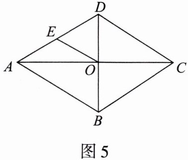 5. 如图5,菱形ABCD的对角线AC,BD相交于点O,E为AD的中点,若OE=3,则菱形ABCD的周长为______