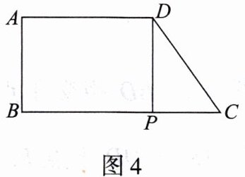 4. 如图4,在四边形ABCD中,AD//BC,AB⊥BC,AB=4cm,AD>AB,CD=5cm,点P从点C出发,沿CB边以每秒1cm的速度向点B运动,