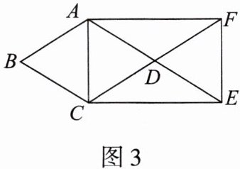 3. 如图3,在菱形ABCD中,∠B=60°,AB=1,延长AD到点E,使DE=AD,延长CD到点F,使DF=CD,连接AC,CE,EF,AF,则下列表述正确的是(