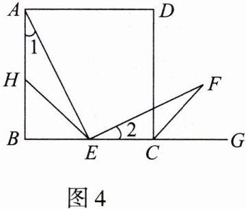 8. 如图 4,四边形 $ABCD$ 是正方形,$H$ 是 $AB$ 的中点,$E$ 是 $BC$ 的中点,$\angle A E F = 90 ^ { \circ }$,$EF$ 交 $\angle D C G$ 的平分线 $CF$ 于点 $F$,连接 $EH$. 求证:$A E = E F$.