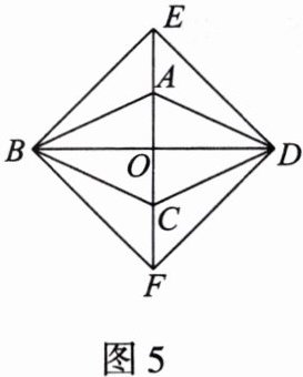 9. 如图 5,菱形 $ABCD$ 的对角线 $AC$,$BD$ 相交于点 $O$,分别延长 $OA$,$OC$ 到点 $E$,$F$,使 $A E = C F$,依次连接点 $B$,$F$,$D$,$E$.