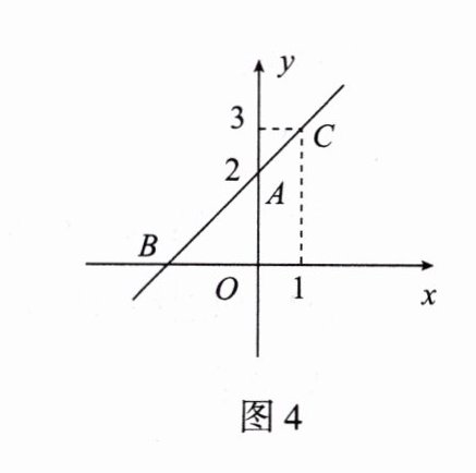 7. 如图4,直线$y=kx+b$经过点$C(1,3)$,与坐标轴分别交于点$A(0,2)$和点B.