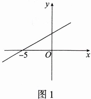 1. 如图1,直线$y = kx + b(k \neq 0)$与$x$轴交于点$(-5,0)$,则关于$x$的方程$kx + b = 0$的解为(
