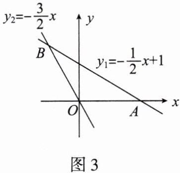 6. 如图3,已知直线$y_1 = -\frac{1}{2}x + 1$与$x$轴交于点$A$,与直线$y_2 = -\frac{3}{2}x$交于点$B$.