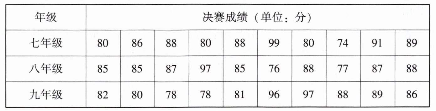 (2) 请从以下两个不同的角度对三个年级的决赛成绩进行分析: