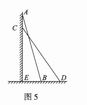 9. 如图 5,一架云梯 AB 长 25 米,顶端 A 靠在墙上,这时云梯下端 B 与墙角 E 之间的距离为7 米,云梯下滑后停在 CD 的位置上,测得 DB 的长为 8 米,那么云梯顶端 A下滑了