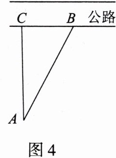 8. 我方侦察员小王在距离东西向公路 400 m 的 A 处侦察,发现一辆敌方汽车在一段笔直的公路 BC 上行驶 (如图 4). 他赶紧拿出红外测距仪,测得此时汽车与他相距400 m,10 s 后,汽车与他相距 500 m. 你能帮小王计算出敌方汽车行驶的速度吗?