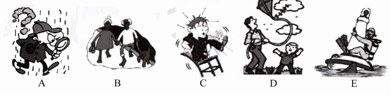 各地的记者正在街头调查上周五下午五点大家的活动。请根据下面五位被采访者的回答,将与之对应的图片序号填在相应的横线上。