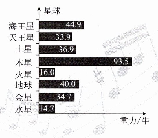 18. 如图所示是一只小狗在太阳系的不同行星上所受的重力大小。根据图中所给的信息,一名质量为50kg的中学生在火星上所受的重力大小为