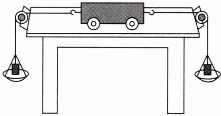 1. 如图所示,把小车放在水平桌面上,向挂在小车两端的托盘里加相同的砝码,下列说法正确的是(