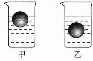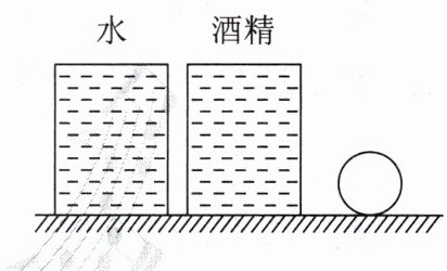 7. 如图所示,一实心小球轻轻放入盛满水的大烧杯中,静止后有$76g$水溢出;将其轻轻放入盛满酒精的大烧杯中,静止后有$64g$酒精溢出。已知酒精的密度是$0.8×10^{3}kg/m^{3}$,则实心小球在水中的状态及实心小球的密度是 (
